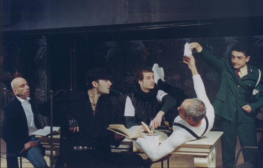Peines d’amour perdues de Shakespeare (2002), mise en scène: Stathis Livathinos. Yannis Mavritsakis, Panagiotis Bougiouris, Nikolas Papagiannis, Stathis Grapsas, Dimitris Imellos. Source: Archive du Théâtre National