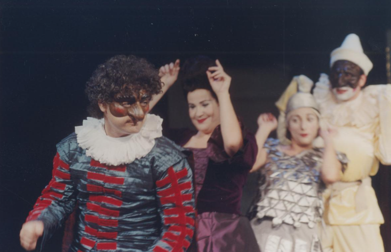 Molière (La compagnie des comédiens) de Boulgakov (2004), mise en scène: Stathis Livathinos. Dimitris Imellos, Maria Savvidou, Natalia Stylianou, Aris Troupakis. Photo: Archive du Théâtre National