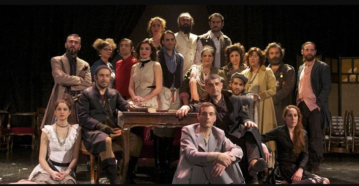 Le Songe de Strindberg (2005). Stathis LIvathinos (en bas, au centre) avec membres de la troupe. source: stathislivathinos.com