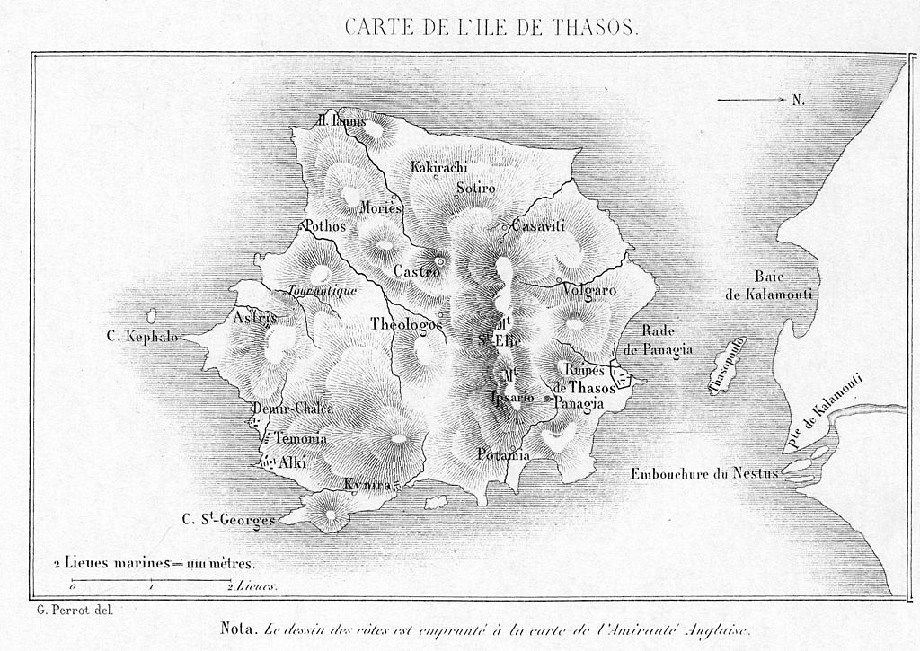 *Image de couverture : Carte de l’île de Thasos Perrot, Georges, ‘’ Memoire de l’ile de Thasos’’, Paris 1864 – Source : Domaine public via Wikimedia Commons