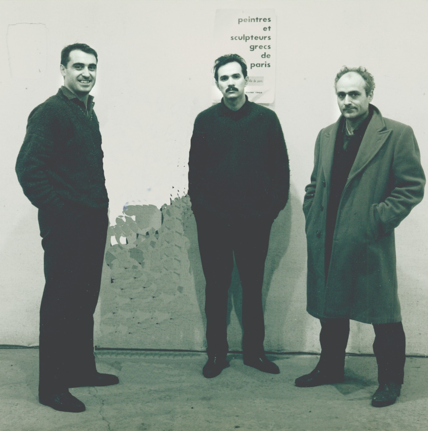 Theodoros (1931-2018), Christos Karas (1930-2023) et Gerasimos Sklavos (1927-1967) à l’exposition ‘Peintres et Sculpteures Grecs de Paris’ au Musée d’Art Moderne de Paris, 1962.. Source : Instagram/Theodoros