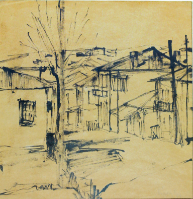 «Vue depuis la fenêtre », Agrinion, 1954 et Théodoros pendant la construction de l’horloge du métro Syntagma, 2001. Source: Theodoros.net